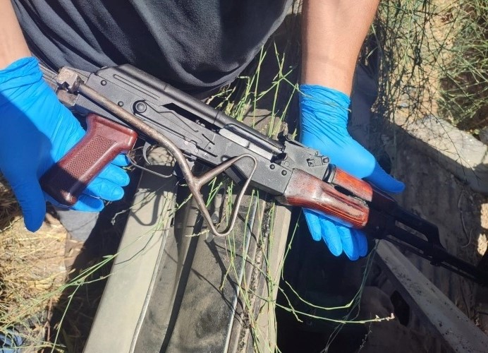 خلال نشاط التفتيش، ضبط أفراد الشرطة قبل قليل, سلاحين هجوميين من طراز كلاتشنيكوڤ, ومسدس وأمشاط مليئة بالذخيرة ومواد مشتبهة كمخدرات خطرة بأنواع مختلفة وعشرات الآلاف من الشواقل نقدًا.