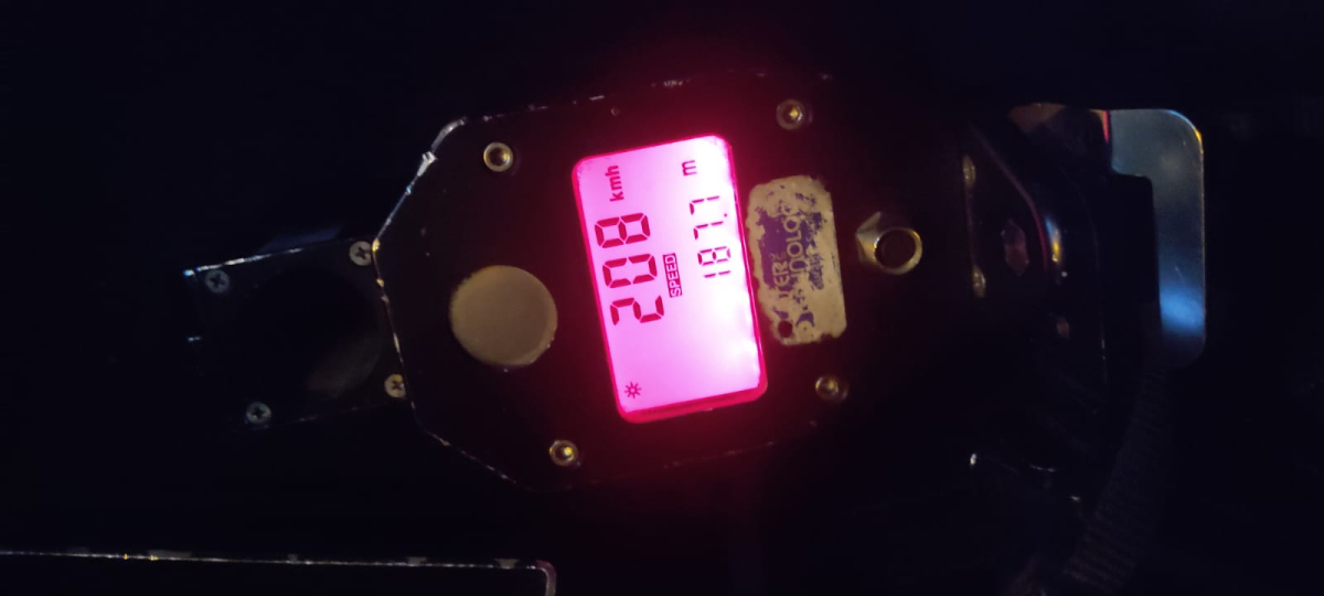 أفراد قسم المرور يضبطون سائق من سكان الرملة (33) وهو يقود سيارته بسرعة فائقة 208 كم/س بدلاً من 110 كم/س بينما رخصة قيادته مسحوبة".