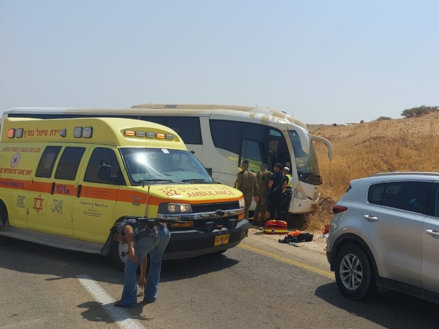 أُصيب 5 أشخاص، ظهر اليوم الأحد، وصفت إصابات اثنين منهم بالمتوسطة و3 إصابات بجروح طفيفة، إثر إطلاق نار على حافلة في شارع 90 في غور الأردن، وفق ما أكد طاقم "نجمة داود الحمراء" في بيان.