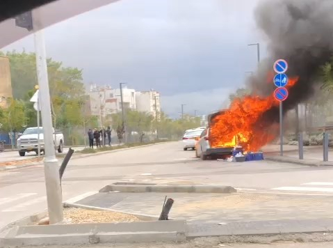 احتراق مركبة في مدينة اللد