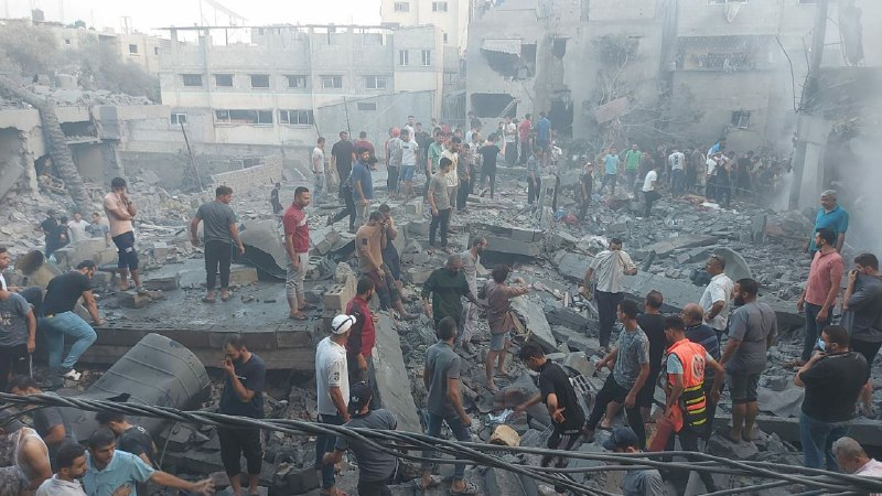 وتواصل الطائرات الحربية الاسرائيلية، قصف أنحاء واسعة من قطاع غزة، منازل وأبراج ومنشآت تجارية، ومقرات حكومية، وجامعات، وبنى تحتية، وترتكب عشرات المجازر بحق العائلات الآمنة في بيوتها.