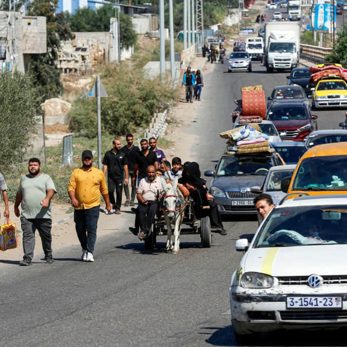 في مقطع فيديو مؤلم يظهر فيه مراسل الجزيرة وائل الدحدوح أثناء نزوحه مع الغزيين نحو الجنوب في مشهد مؤلم يعيد إلى الذكريات نزوح عام 1948. حيث قال معقبا لأحد المراسلين :"هذه رحلة عذاب ترك الديار أمر صعب".