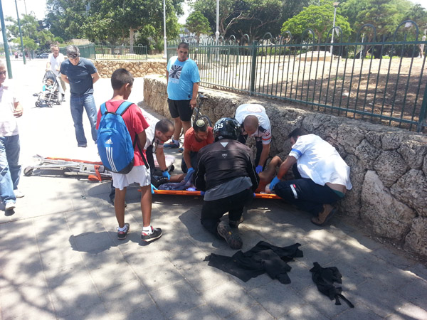 بالصور: إصابة متوسطة لراكب دراجة هوائية بحادث دهس في شارع شديروت يروشلايم بيافا