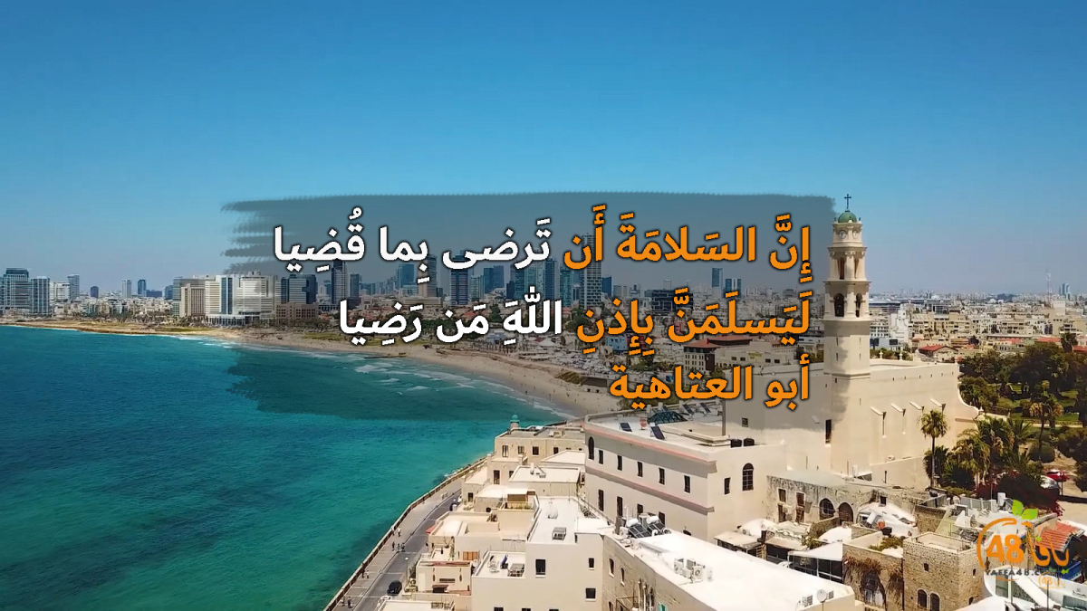 ما زال موقع يافا 48 مستمر معكم في نشر مختارات من أجمل القصائد، مع مقاطع جوية ساحرة لمدينة يافا، وهذه المرة نستمع لقصيدة "إِنَّ السَلامَةَ أَن تَرضى بِما قُضِيا" للشاعر ابي العتاهية والتي يقول فيها :