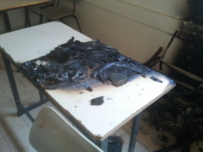 علم مراسل موقع يافا 48 أن مجهولين أضرموا النيران عصر أمس الاثنين في مدرسة دار الحكمة الثانوية "طوماشين" بمدينة اللد، حيث قال مراسلنا أن الحريق لم يُسفر عن وقوع إصابات إلا أن أضراراً لحقت ببعض محتويات المدرسة.