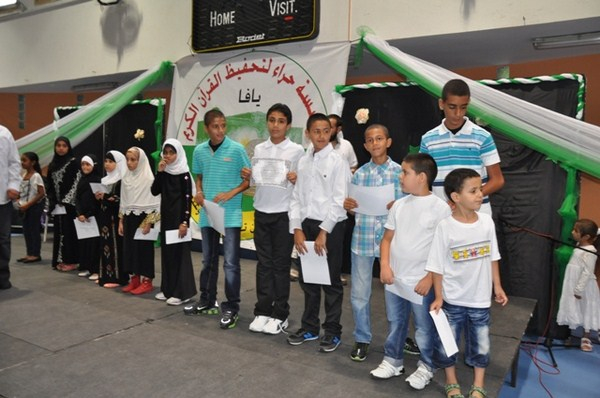 وسط حضور العشرات من أهالي مدينة يافا، أقامت إدارة مركز حراء لتحفيظ القرآن الكريم في الحركة الإسلامية بمدينة يافا مساء أمس الجمعة احتفالها السنوي بمناسبة انتهاء فعاليات مركز حراء للعام الدراسي الحالي 2013، وسط مشاركة واسعة من قيادات المدينة ورجالات التربية والتعليم وذوي الطلاب، حيث أقيم الحفل في قاعة المركز الجماهيري بمدينة يافا.