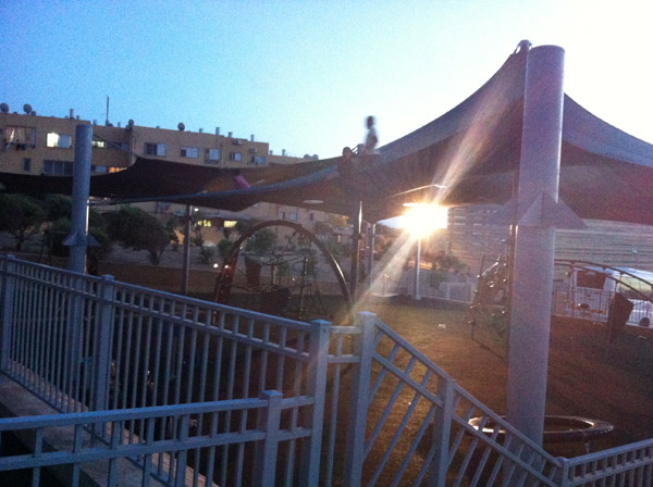 بعث أحد متصفحي موقع يافا 48 بعضاً من الصور التي من خلالها يُشاهد مجموعة من الأطفال والفتية في ظاهرة غريبة وخطيرة، وهم يلعبون فوق المظلات القماشية للحدائق العامة "الشوادر"، والتي نُصبت أصلاً لتهيئة المكان وتظليله ووقاية النزلاء والأطفال من حر الشمس أثناء لعبهم في الحديقة.