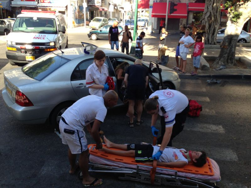بالصور: إصابة طفيفة لسيدة وطفلها بحادث طرق بشارع شديروت يروشلايم بيافا