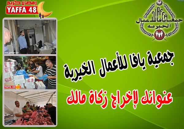 دعت جمعية يافا للأعمال الخيرية أهالي مدينة يافا والمحسنين بضرورة الإسراع في إخراج زكاة أموالهم، بداية من إخراج زكاة الفطر وصولاً إلى إخراج أموال الزكاة لمن ملك نصاب المال، وذلك ليتسنى للجمعية القيام بتوزيع الأموال على مستحقيها من العائلات المستورة في المدينة، وليُمنحوا الوقت الكافي لسد احتياجاتهم قبل دخول موسم عيد الفطر.