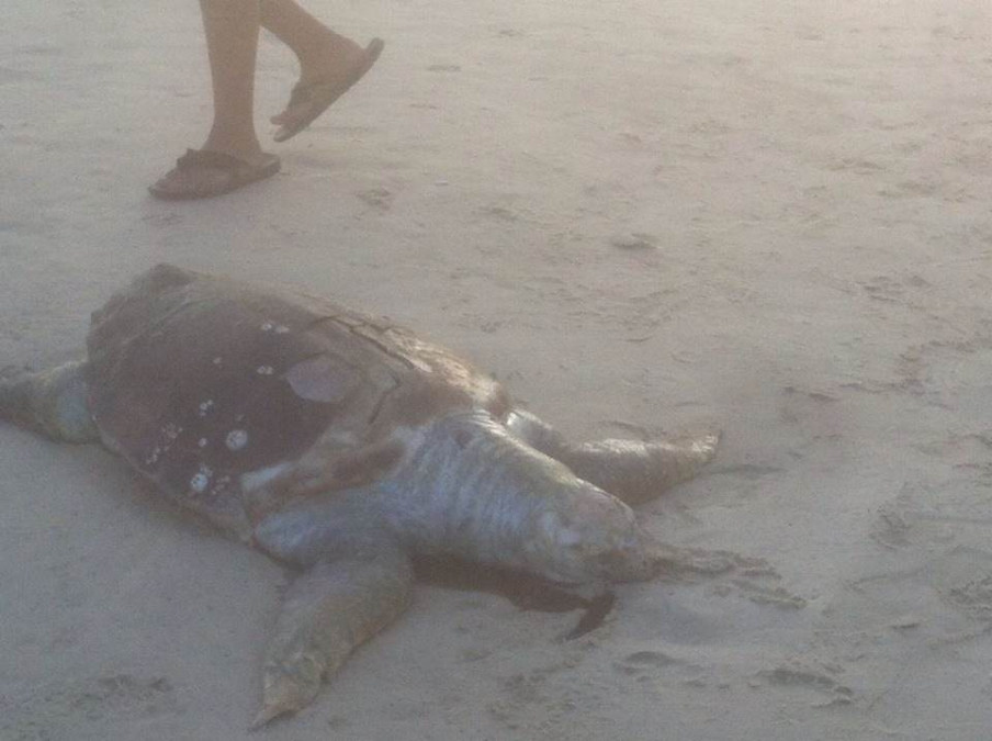 بالصور: الأمواج تقذف سلحفاة بحرية ضخمة على شاطئ ناخوم جولدمان
