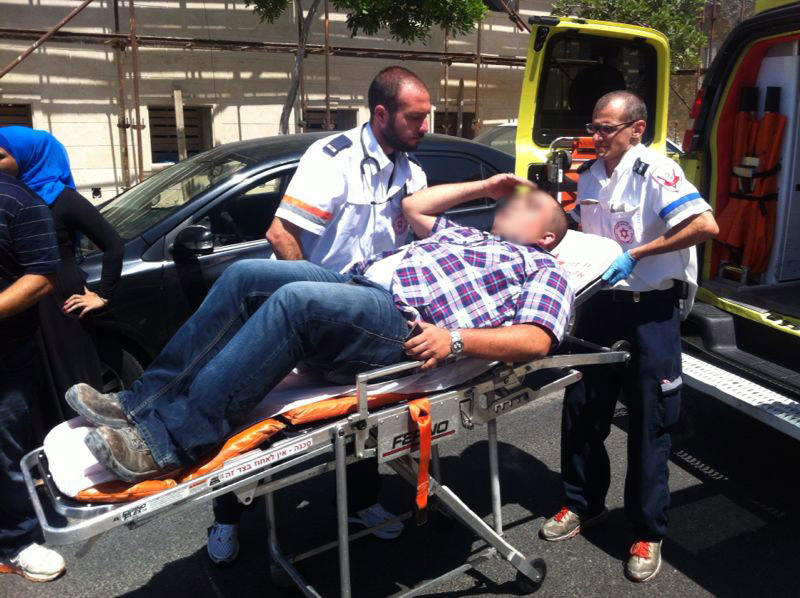 بالصور: إصابة طفيفة لسائق بحادث طرق بين مركبتين وسط حي العجمي بيافا