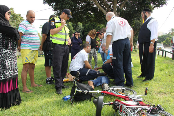 بالصور: إصابة طفيفة لفتى سقط عن دراجة هوائية في شارع شيفتي يسرائيل بيافا