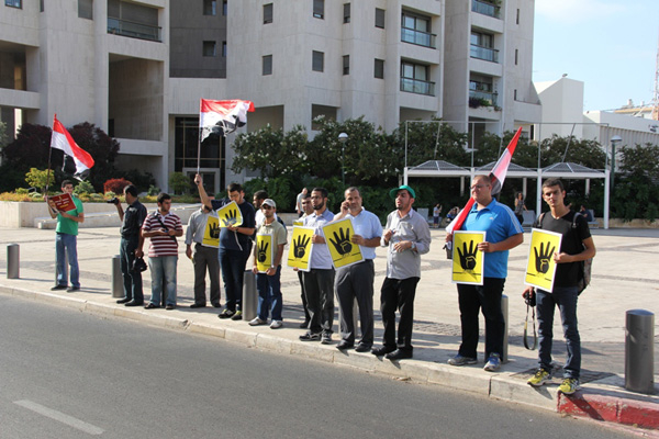 نظمت مؤسستا "إقرأ القطرية" ومؤسسة القلم من مدينة يافا عصر اليوم الأربعاء تظاهرة احتجاجية أمام السفارة المصرية في تل أبيب، حيث جاءت التظاهرة احتجاجاً على قمع قوات الجيش والداخلية المصرية للابرياء من مؤيدي الريس محمد مرسي في ميادين القاهرة.