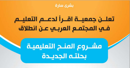 أعلنت جمعية إقرا لدعم التعليم في المجتمع العربي عن انطلاق مشروع المنح التعليمية بحلته الجديدة، بحيث سيكون التسجيل من تاريخ 15-9-2013 ولغاية 20-10-2013.