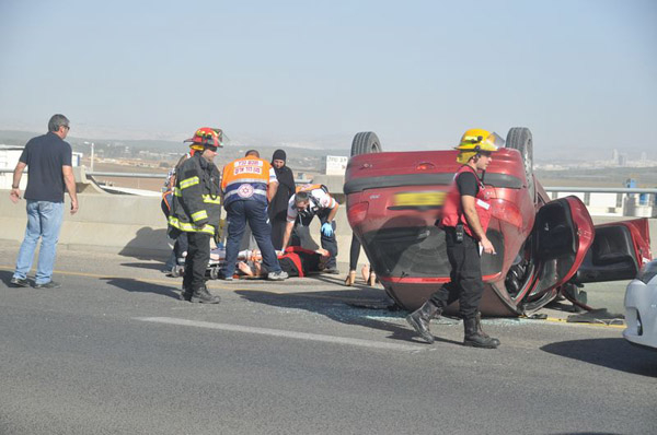 بالصور: إصابة سيدتين بانقلاب مركبة في شارع رقم 40 قرب الرملة