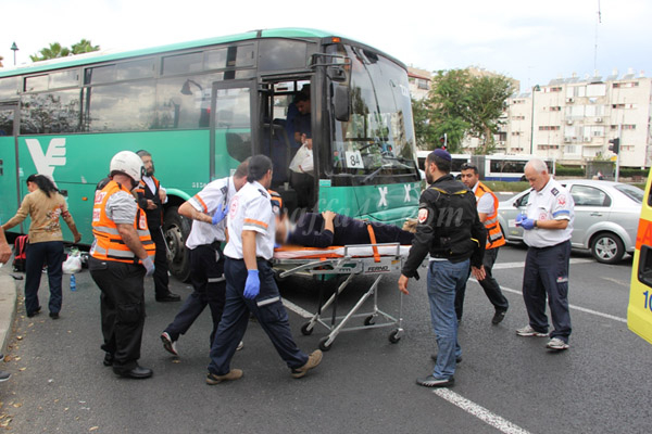 بالصور: إصابة خطيرة لسيدة اثر تعرضها لحادث دهس من قبل حافلة وسط يافا