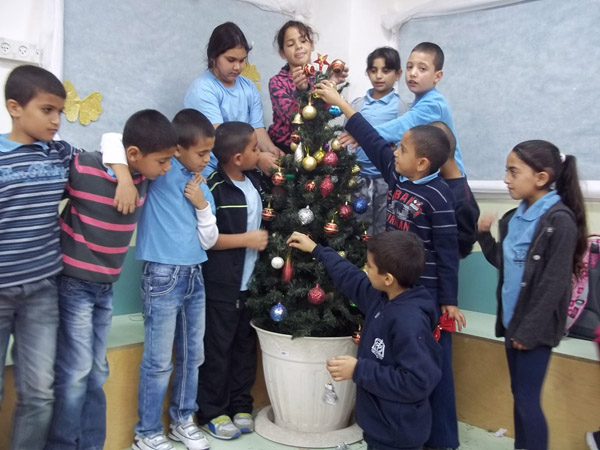 كما وشارك كل طلاب المدرسة بنصب شجرة العيد وتزيينها في مدخل المدرسة.