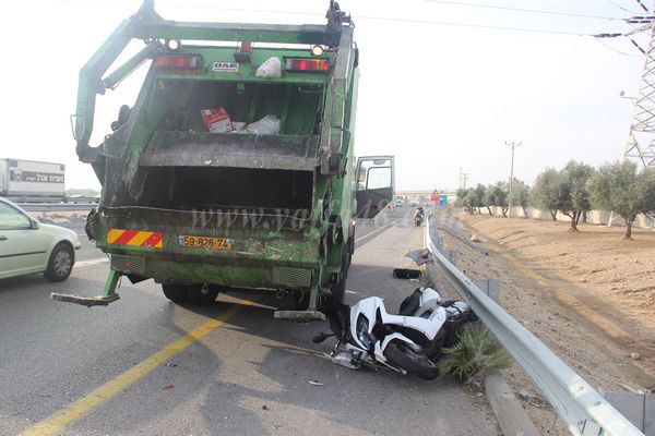 بالصور: إصابة شرطي بحادث طرق بين شاحنة ودراجة نارية في مدينة اللد