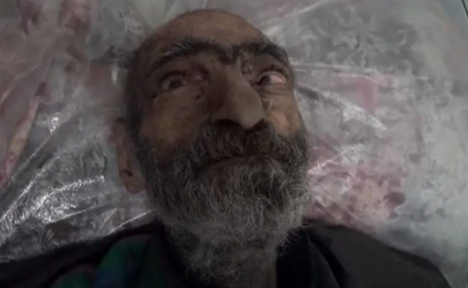 شاهد بالفيديو المسن الفلسطيني محمد سعيد ابراهيم جربوع من مواليد مدينة يافا عام 1943، يصارع الموت البطيء في مشفى فلسطين بمخيم اليرموك المحاصر، حيث أنه مصاب بالجفاف نتيجة الجوع، فيما أكد جيرانه بأنه لم يتناول الطعام منذ أسبوع وقد تدهورت حالته الصحية واصيب بتقرحات جلدية في انحاء جسده وانتفاخ في قدميه، كما أنه من شهود نكبة عام 1948م.