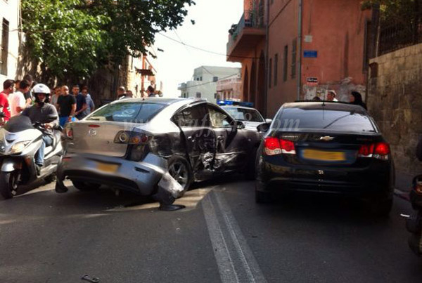 بالصور: إصابة 4 أشخاص بحادث طرق بين مركبتين وسط مدينة يافا
