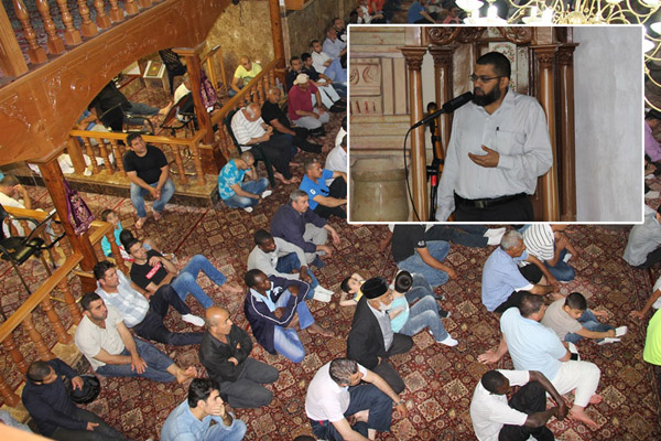 ألقى الشيخ إبراهيم سلامة ظهر اليوم خطبة الجمعة في مسجد يافا الكبير "المحمودية" وسط حضور جمع غفير من أهالي المدينة، حيث تحدث الشيخ إبراهيم خلال خطبته عن الاعتداءات المتكررة التي تتعرض لها المساجد في البلاد وخاصة المسجد الأقصى المبارك، وحرق بوابة مسجد أبو بكر الصديق في مدينة أم الفحم مؤخراً على أيدي مجهولين.