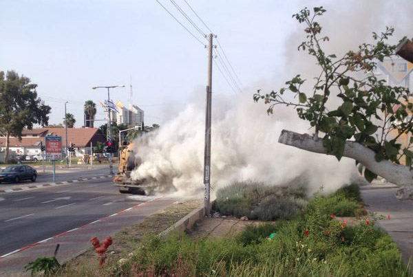 بالصور: إصابة سائق شاحنة تابعة للبلدية اثر احتراقها وسط مدينة الرملة