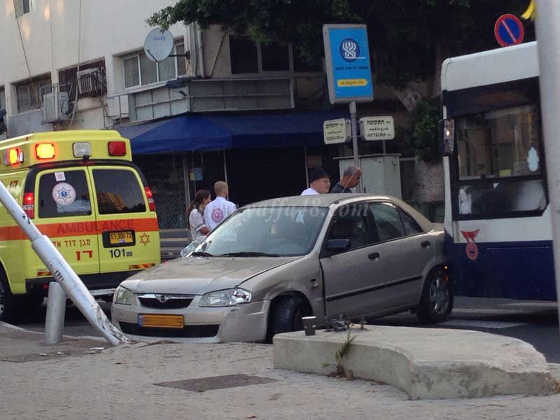 بالصور: إصابة متوسطة لسائق بحادث طرق بين حافلة ومركبة وسط يافا