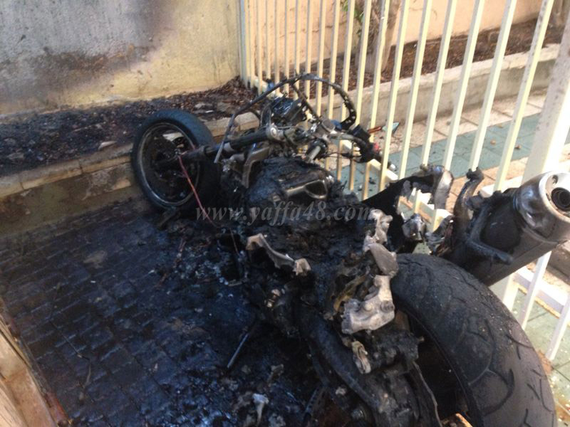 بالصور: مجهولون يضرمون النار بدراجة نارية وسط مدينة يافا دون وقوع إصابات