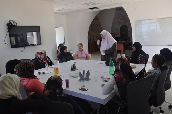 كما وتحدث المربية أم مصعب أو زيد خلال كلمتها عن كيفية دخول النساء إلى الهيئة الاسلامية وتركيبتها، وذلك لفتح نافذة جديدة لنساء يافا، ثم تطرقت كيف أن أم المؤمنين خديجة رضى الله عنها كانت أول مستشارة للنبي صلى الله عليه وسلم وذلك لرجاحة عقلها، وقالت "لا تستهينوا بعقولكن، فبالعزيمة والارادة نصل الى ما نصبو إليه"، ثم قامت بتمرير تمرين تربوي يعزز هذه الفكرة حيث كانت الدهشة واضحة على وجوه المشاركات من الطالبات.
