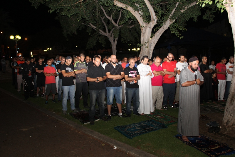 أمّ المئات من أهالي مدينة يافا مساء اليوم الاثنين حديقة الغزازوة في حي العجمي لأداء صلاتي العشاء والتراويح التي دعت إليها القوى الاسلامية في مدينة يافا، وذلك قبيل التظاهرة الاحتجاجية التي ستُقام في الحديقة تنديداً بجرائم الاحتلال بحق الأطفال والأبرياء من أهالي قطاع غزة.