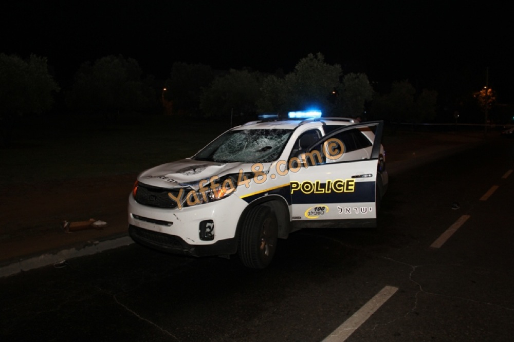 مصادر الطبية تفيد أن المصاب وهو شاب عربي من مدينة يافا تعرض لاصابة بالغة الخطورة في رأسه وان الأضرار في سيارة الدورية تعكس خطورة الإصابة.
