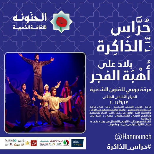 تقوم فرقة جوبي للفنون الشعبية – يافا بوضع لمساتها واستعداداتها الأخيرة لتقديم عرضها "عايشين بوهم الحرية" في المركز الثقافي الملكي – مدينة الحسين للشباب عمان الأردن، حيث قامت جمعية "الحنونة" بإدارة السيد د.موسى صالح بدعوة الفرقة لتقديم عرضها بمهرجان "حرّاس الذاكرة السادس" .