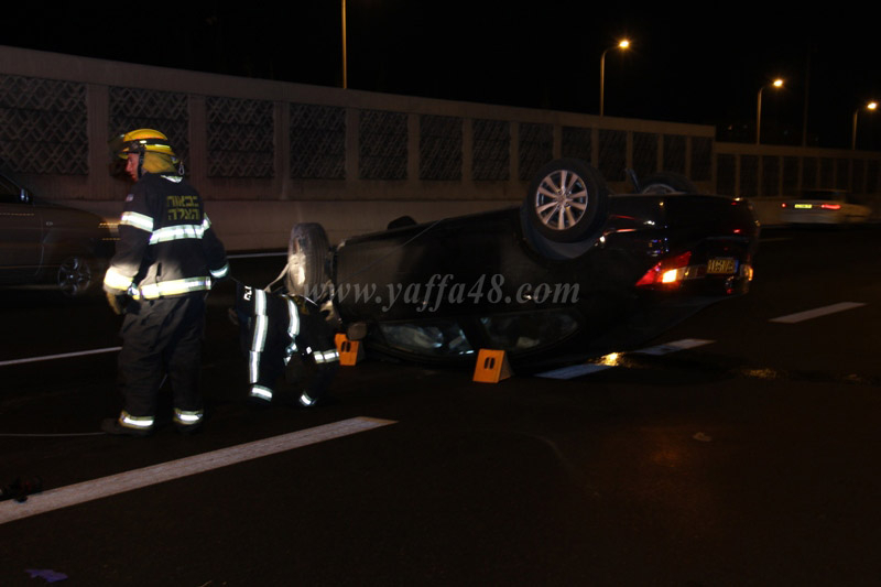 بالفيديو: منتصف الليلة - إصابة شخصين بإنقلاب مركبة في مدينة يافا