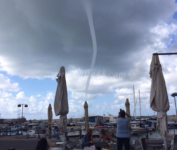 التقطت عدسات بعض المواطنين في مدينة يافا تشكل إعصار "تورنادو" قمعي صغير قبالة شواطئ مدينة يافا صباح اليوم الاثنين، حيث شوهد بشكل واضح وكأنه عامود يمتد من السماء ليصل الأرض.