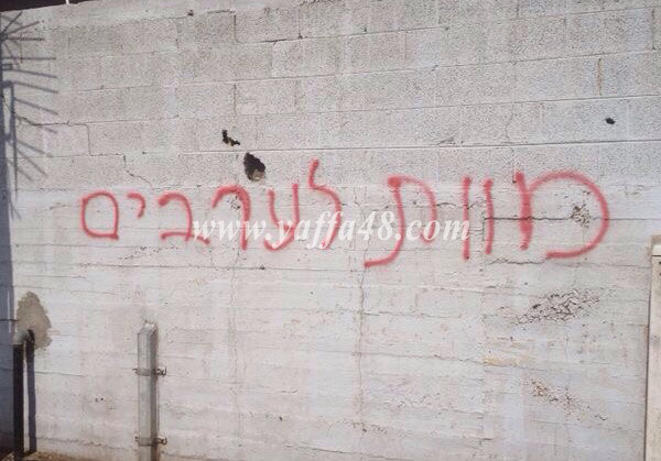 شوهدت صباح اليوم الثلاثاء كتابات عنصرية تدعو للثأر من العرب على جدران مصنع يتبع لعائلة عربية من يافا في مدينة بات يام المجاورة، وعلى ما يبدو فإن متطرفون يهود قاموا بكتابتها على جدران المصنع.