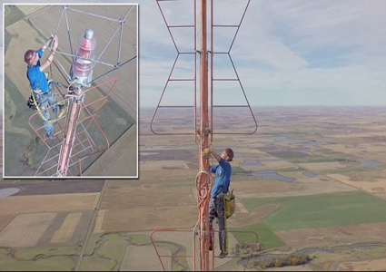 تعتبر وظيفة العامل "كيفن شميدت"، من أصعب المهن في العالم، فقد تضطره وظيفته إلى التسلق لارتفاعات مذهلة، والمخاطرة بحياته معظم الوقت.