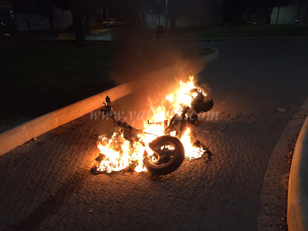 أفاد مراسل موقع يافا 48 أن مجهولين قاموا مساء اليوم السبت بإضرام النيران في دراجة نارية متوقفة في الحديقة المجاورة لشارع شيفتي يسرائيل بمدينة يافا، حيث لم يُسفر الحريق عن إصابات في الأرواح إلا أن النيران التهمت الدراجة بشكل كامل.