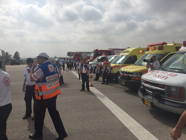 وقد وصل عدد كبير من سيارات الاسعاف إلى المكان المعد لهبوط الطائرة تحسباً لأي طارئ.