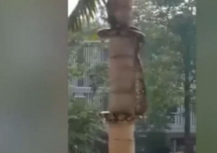 لا يتعلق الأمر بالانزلاق على طول جذع الشجرة فقط، وإنما هو أكثر تعقيدا من ذلك. فقد أظهرت لقطات فيديو تناقلتها وسائل التواصل الاجتماعي، ثعبانا ملتفا بإحكام حول جذع الشجرة.