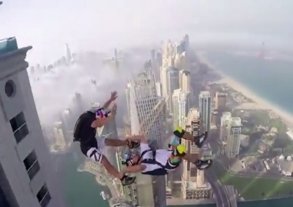 انتشر عبر مواقع التواصل الاجتماعي فيديو يظهر عددًا من الهواة يقومون بالققز من ثاني أطول مجمع سكني بالعالم في دبي.