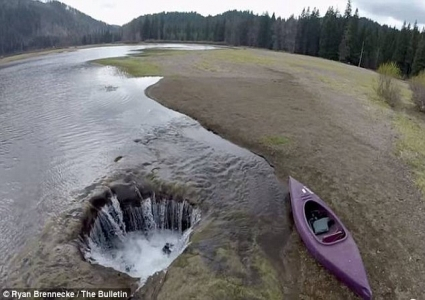 وقالت الصحيفة “شهدت بحيرة قبالة ولاية أوريجون على الطريق السريع حفرة عميقة عملاقة رغم إنها في معظم أيام السنة تبدو مثل أي بحيرة أخرى عادية.
