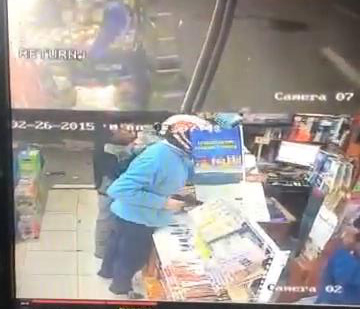 ويظهر في الفيديو قيام المجهول بالتلويح بمسدس وتهديد صاحب البقالة لإعطائه المال، إلا أن أحد الزبائن انقض عليه من الخلف ونجح بالامساك به، والاتصال على الشرطة التي وصلت إلى المكان وقامت بالقاء القبض عليه.