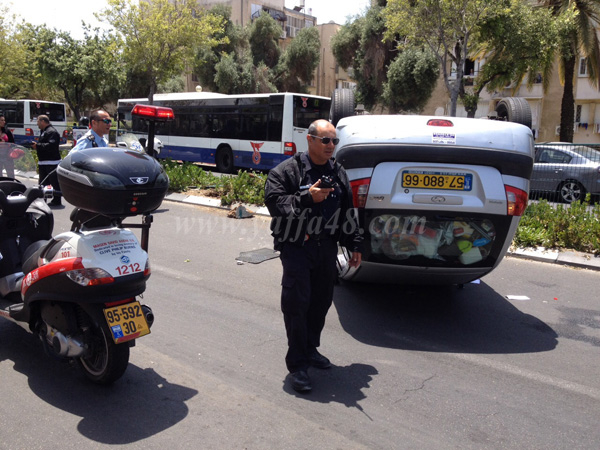 صور: إصابة طفيفة لسائق بانقلاب مركبة في مدينة يافا