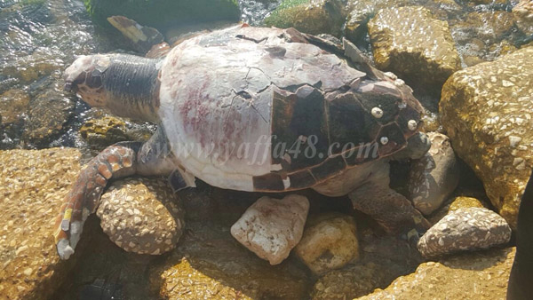 بالصور: العثور على سلحفاة بحرية ضخمة على شاطئ بحر مدينة يافا