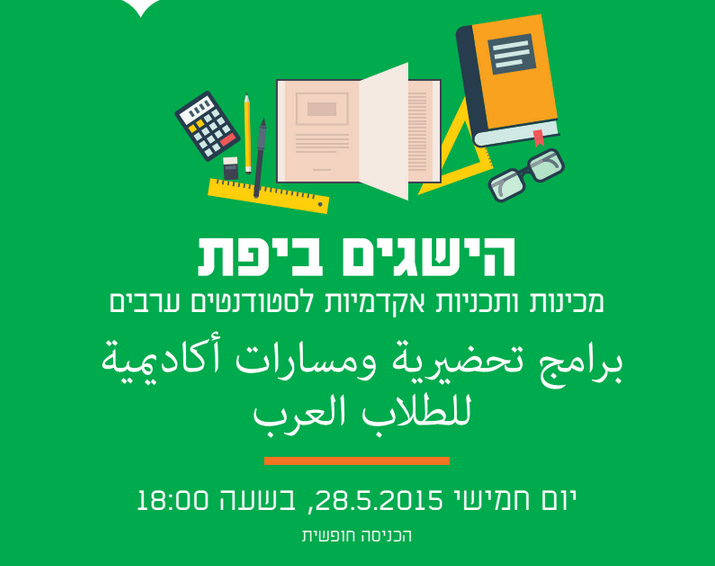 يدعوكم ييفت 83، مركز الشباب في يافا، للمشاركة في لقاء جديد حول التعليم العالي. وسيمكنكم خلال اللقاء الذي سيعقد الخميس 28.5.15 الإستماع الى فرص خاصة، برامج تحضيرية (מכינות) والى مسارات خاصة بالطلاب العرب، بالاضافة الى ادوات تمكن الشباب من المضي قدما في مسيرتهم التعليمية.