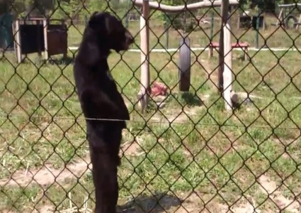فقد ظهر الدب الأسود وهو يقلد البشر في قيامه بالمشي، وقامته مستقيمة، باستخدام قدميه الخلفيتين فقط، في سلوك مرح ويحمل روح الدعابة.