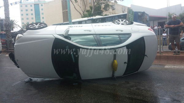 بالصور: إصابة شخصين اثر انقلاب مركبة بحادث طرق في مدينة اللد