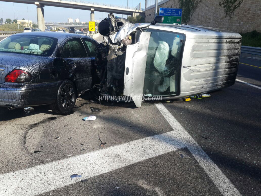 بالصور: إصابة 3 أشخاص بحادث طرق قرب مدينة اللد