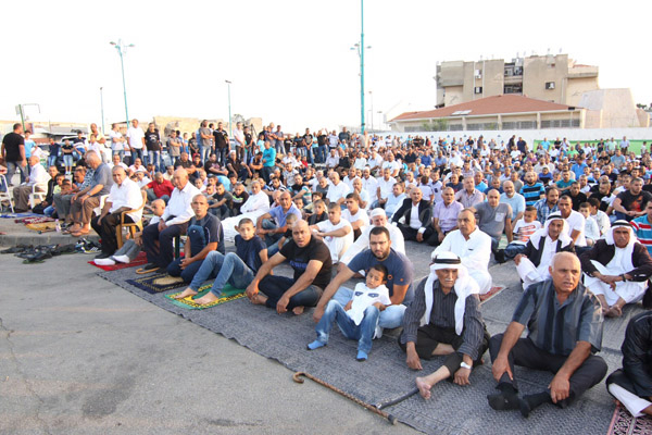وقد توافد جموع المصلين بالمئات من الرجال والنساء والأطفال، فيما كان خطيب الصلاة الشيخ عادل الفار الذي تحدث في خطبته عن الاعتصام بحبل الله والتآخي بين المسلمين وضرورة نشر المحبة والألفة بين أبناء المدينة الواحدة.