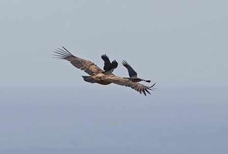 ويتهدد الانقراض النسر الرمادي لكن هذا الامر لا يعني شيئا للغربان التي تبذل كل جهدها لإبعاده وطرده من المنطقة دون ان تكتفي بمهاجمته برا بل صعدت الى عنان السماء حيث يجيد هذا النسر التحليق وهاجمته جوا بما يشبه معارك جوية متواصلة.